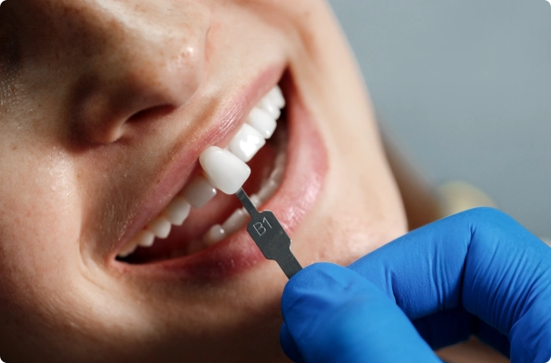 Lorsque les facettes sont prêtes, le patient retourne au cabinet pour l’application. Les facettes sont minutieusement ajustées et fixées avec un ciment dentaire spécial sous une lumière qui durcit le matériau, scellant ainsi les facettes en place. Cette étape assure une adhésion solide et durable des facettes à la surface des dents.
